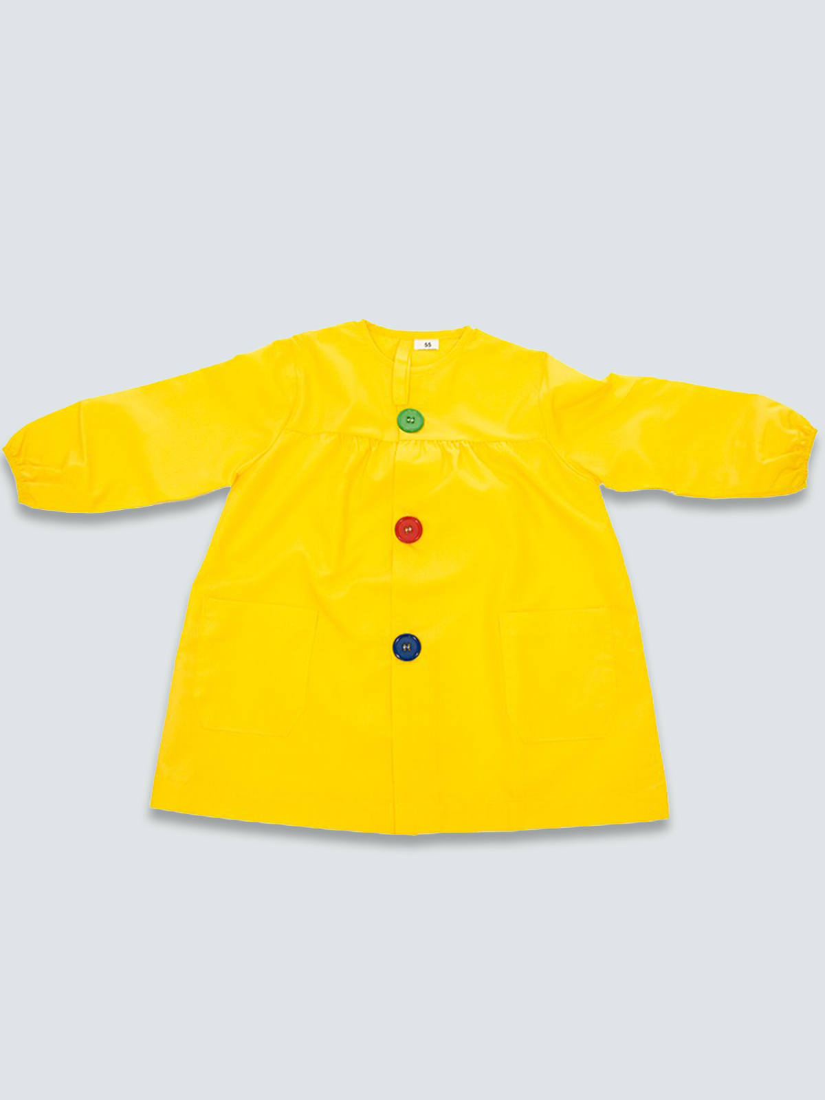 Bata lisa amarilla botones de colores Bata escolar Fabricada en España, 67% Poliéster 33% Algodón, Personalizable con Bordado