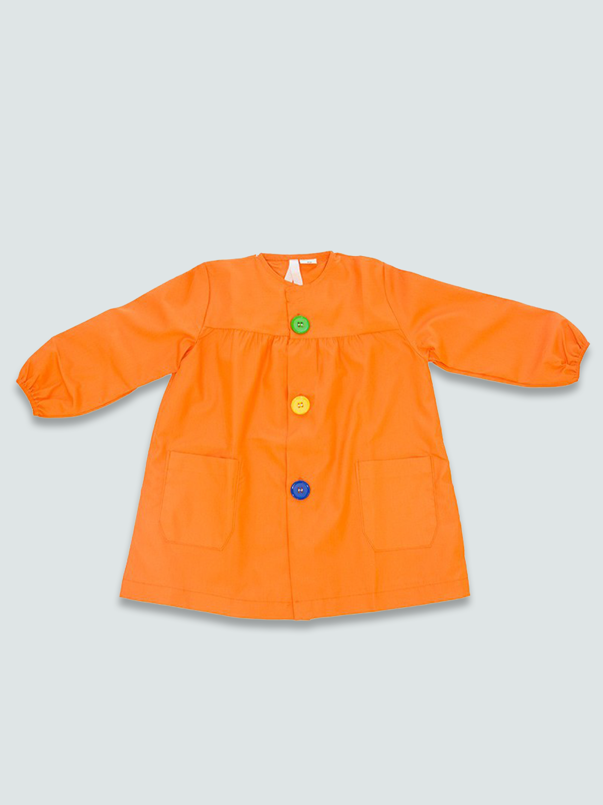 Bata lisa naranja botones de colores Bata Escolar Fabricada en España, 67% Poliéster 33% Algodón, Personalizable con Bordado