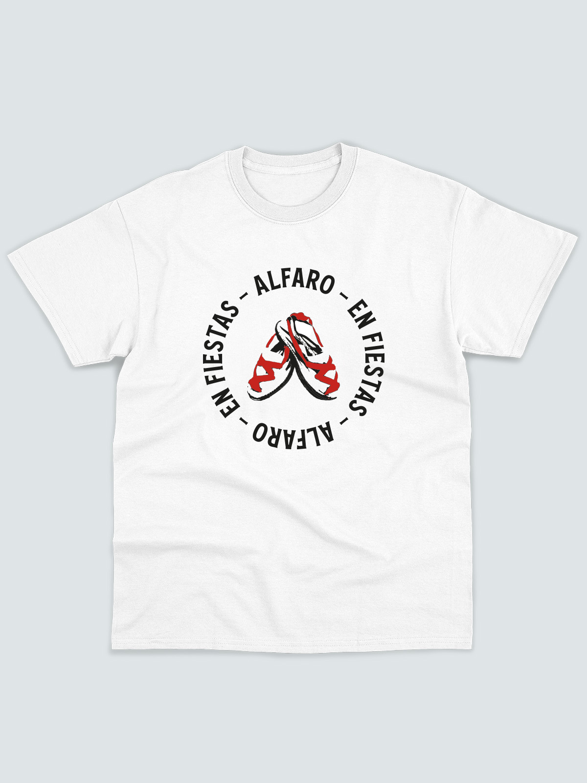 Camiseta blanca 100% algodón con diseño exclusivo de alpargatas, un símbolo de tradición y artesanía local.