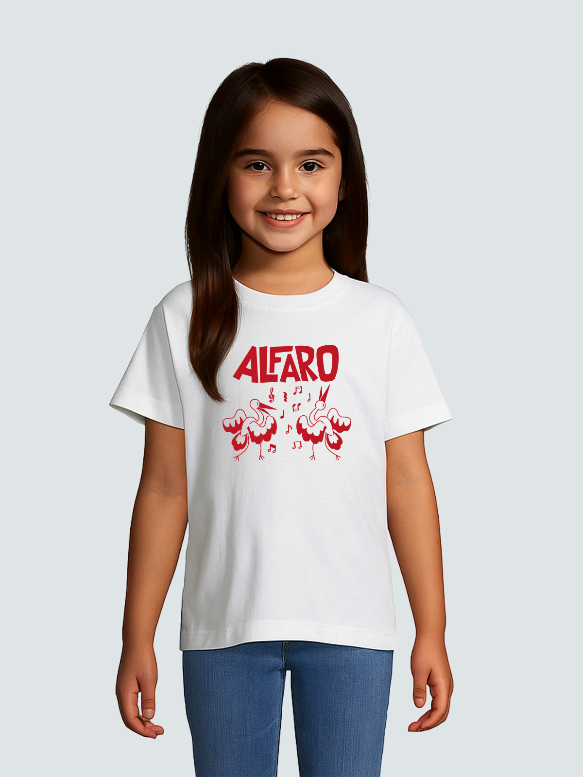 Camiseta blanca de algodón — Diseño “Cigüeñas Bailonas”